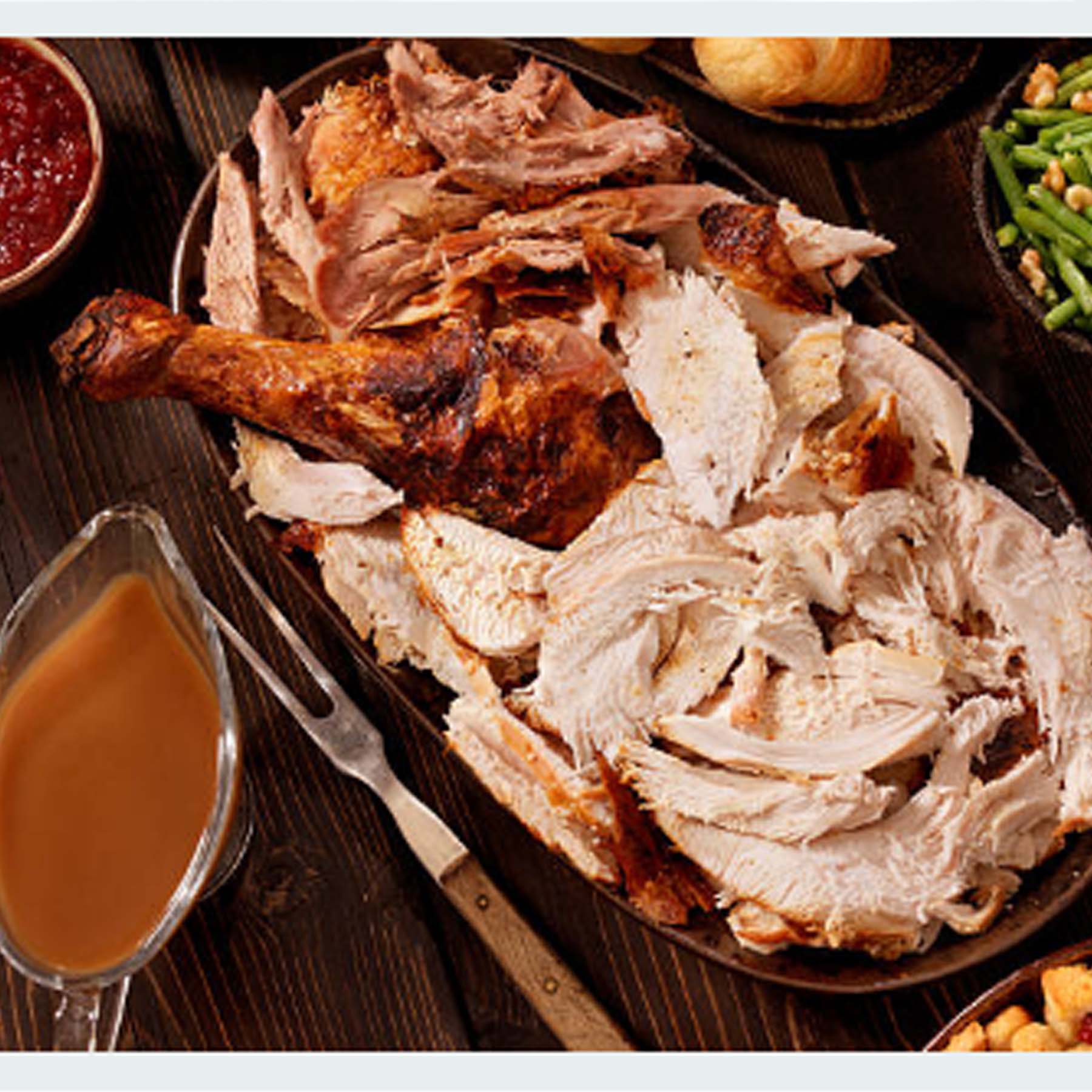Free-range locally raised 10-12 lb turkey cooked and carved.