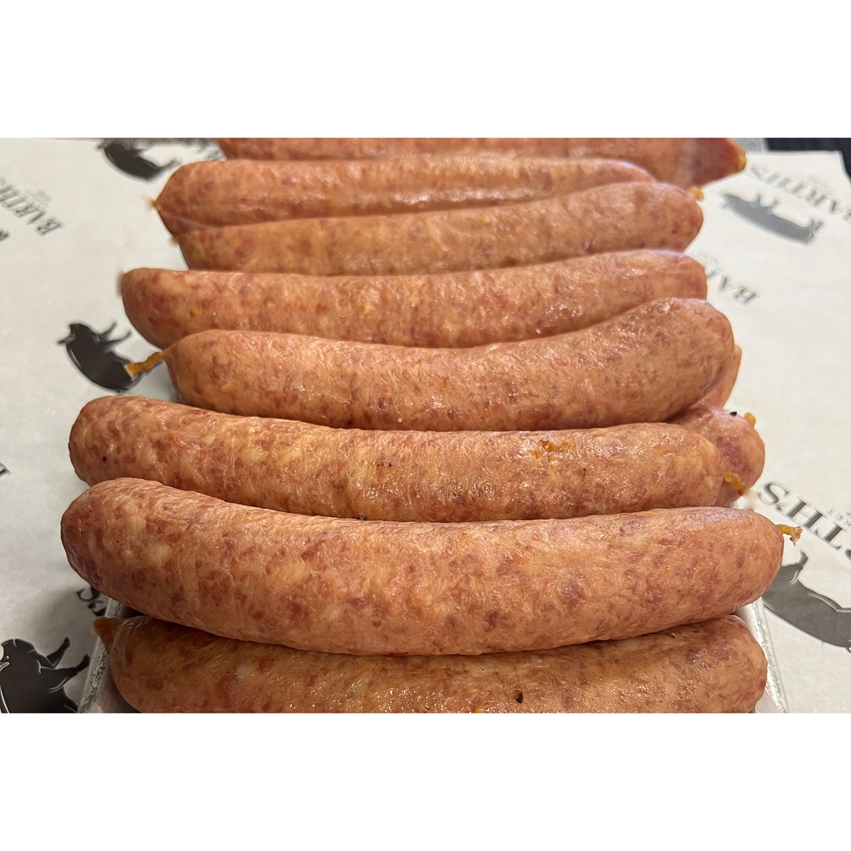 Homemade bauernwurst is a smoked brat made with pork, beef, mustard seed and other seasoning.