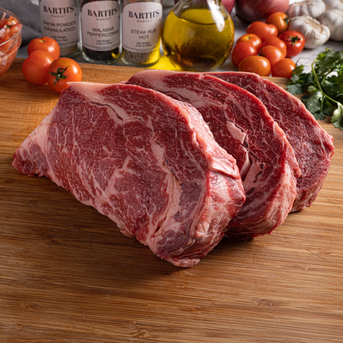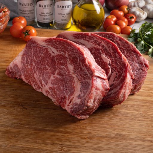 Each rib eye steak weighs approximately 1.25 lbs. Please order by steak, not by weight.