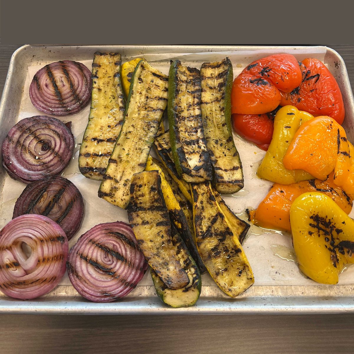 Vegetables are horizontally sliced. Half tray serves 10-12.