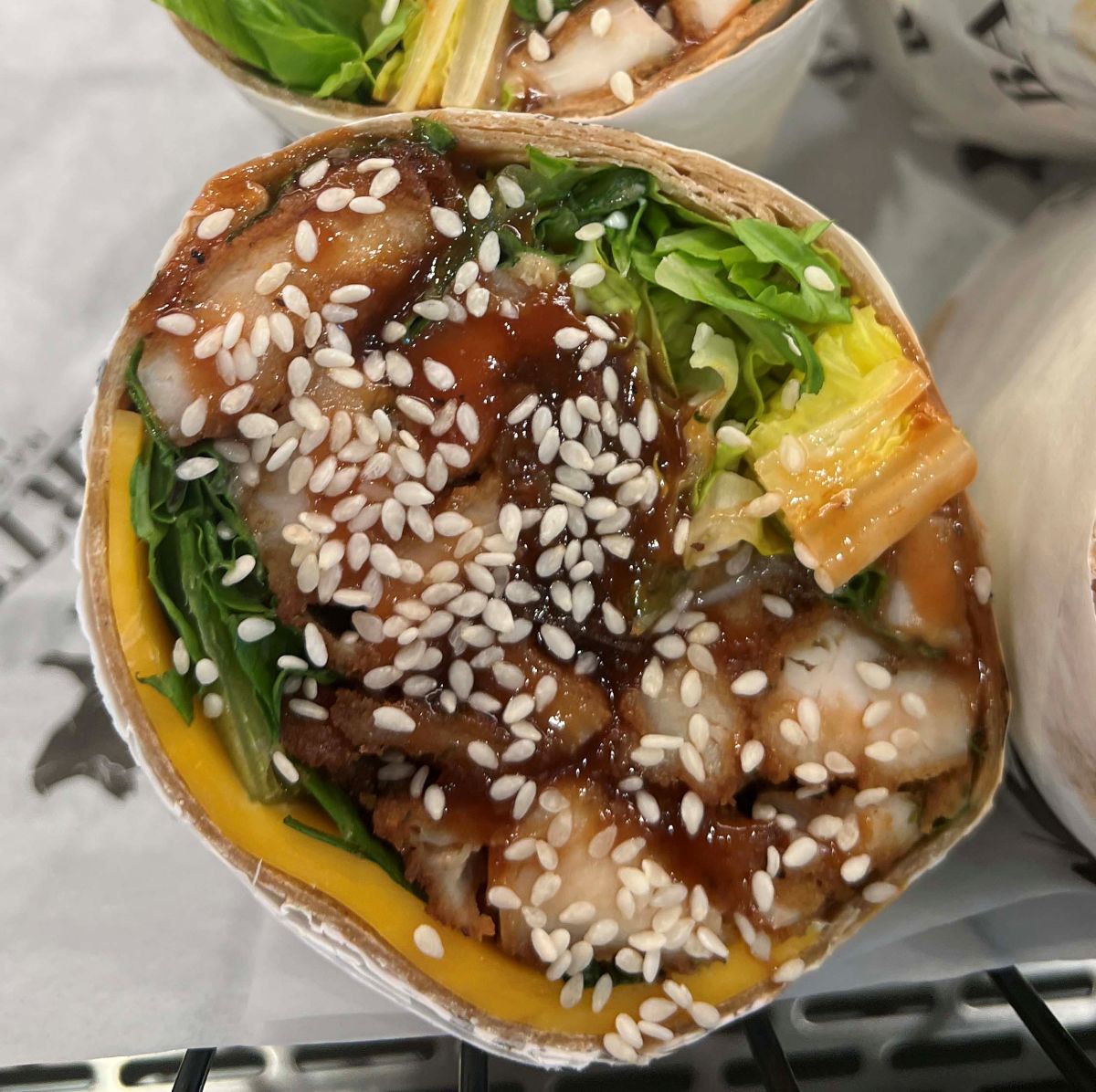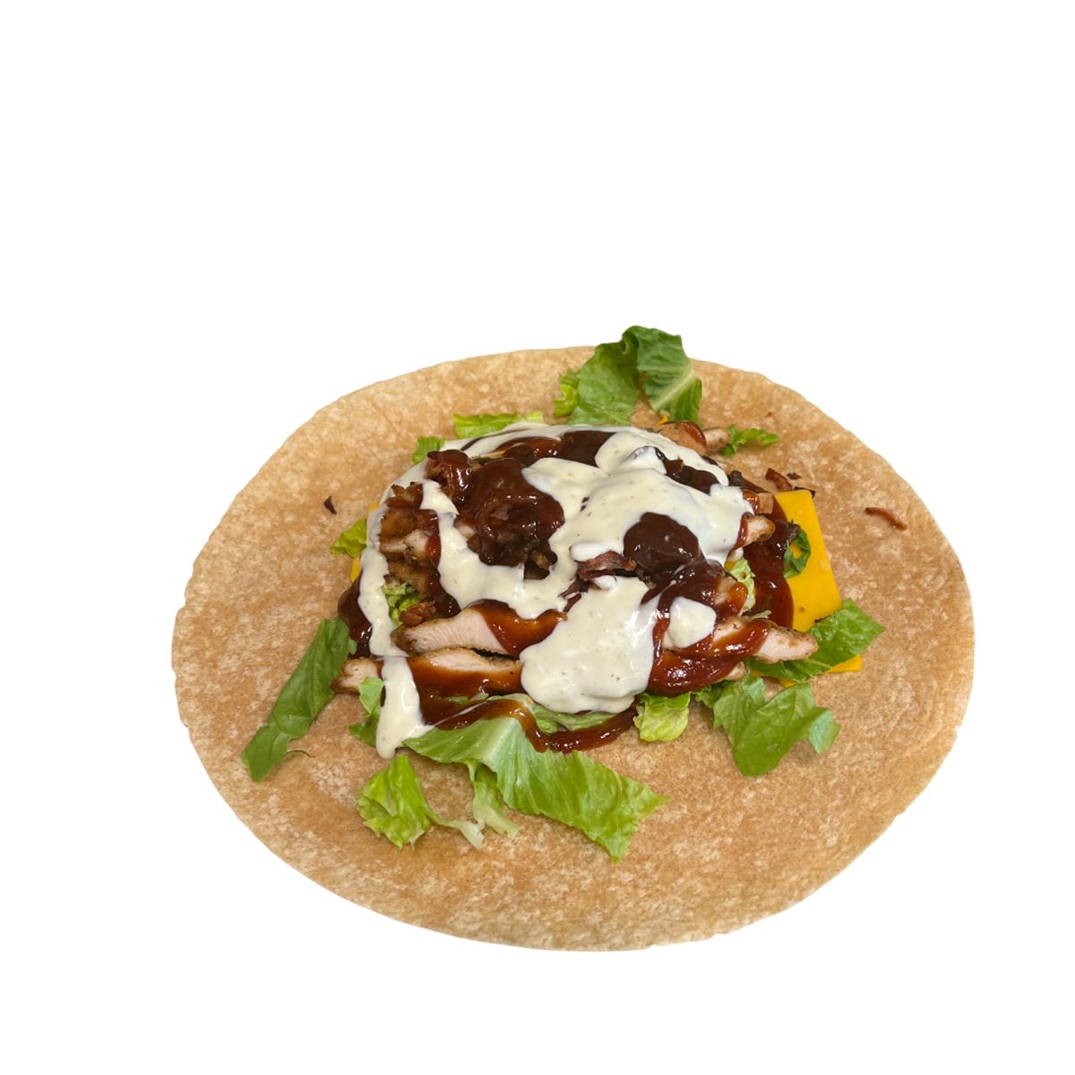 Breaded chicken cutlet, romaine lettuce, cheddar cheese, honey bbq sauce & Ranch dressing.