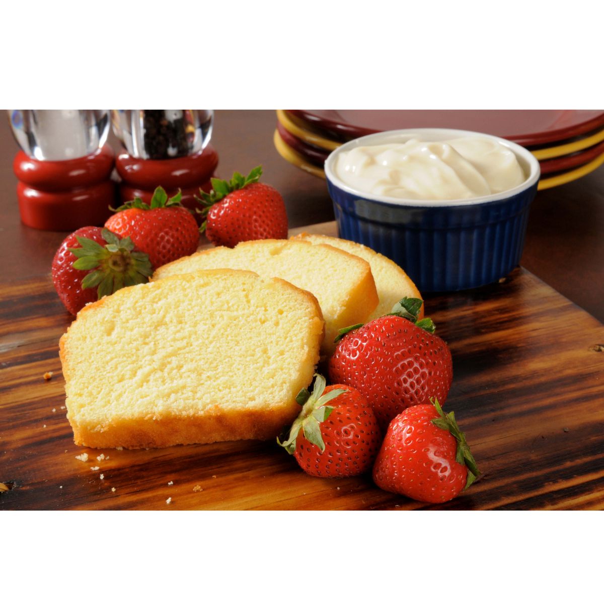 Assorted pound cake slices with mixed berries. Serves 12-16.