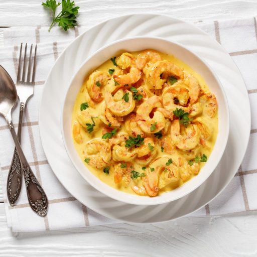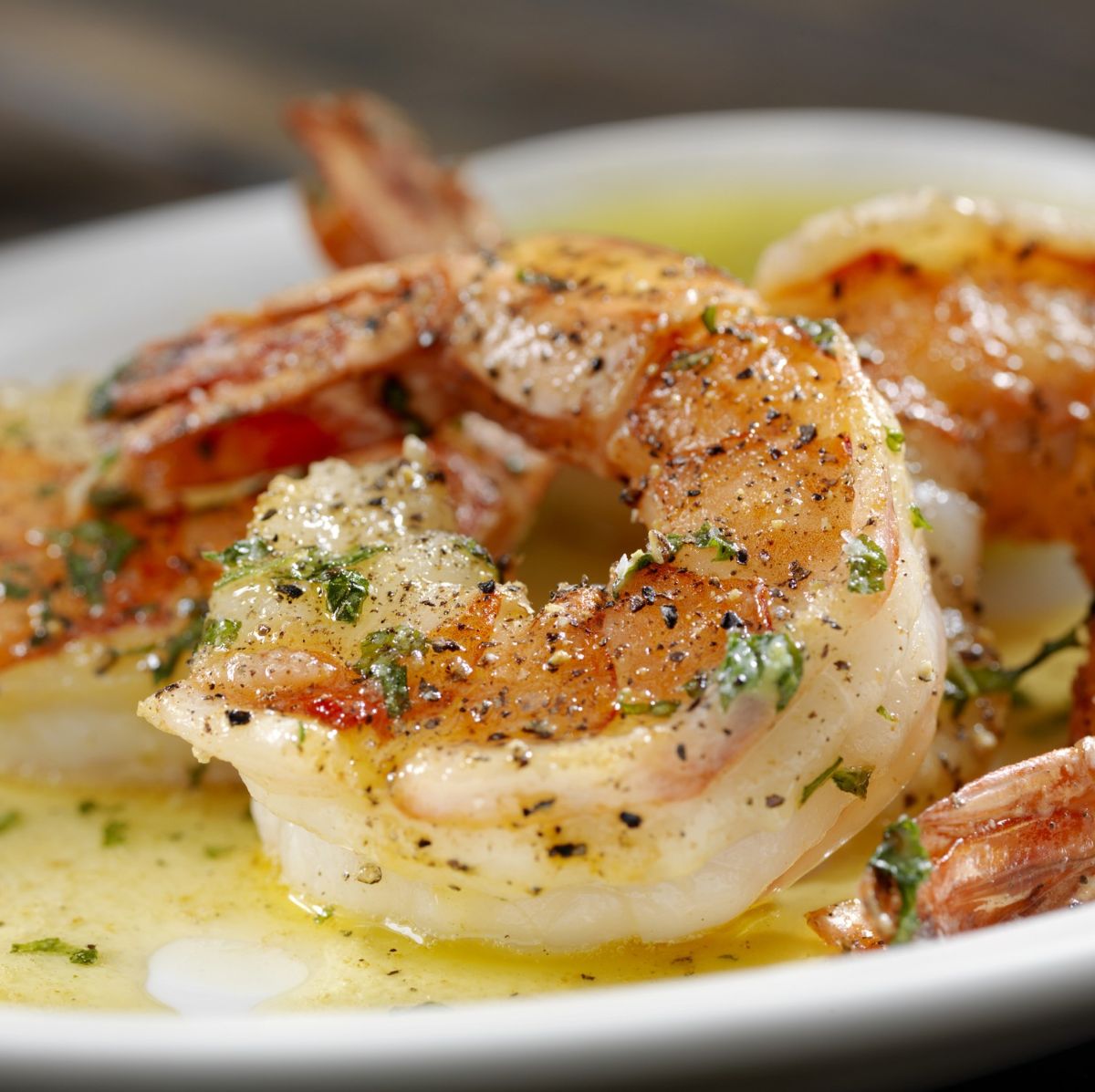 Sauteed shrimp with garlic, butter & red pepper in broth. (No starch) Serves 10-12.