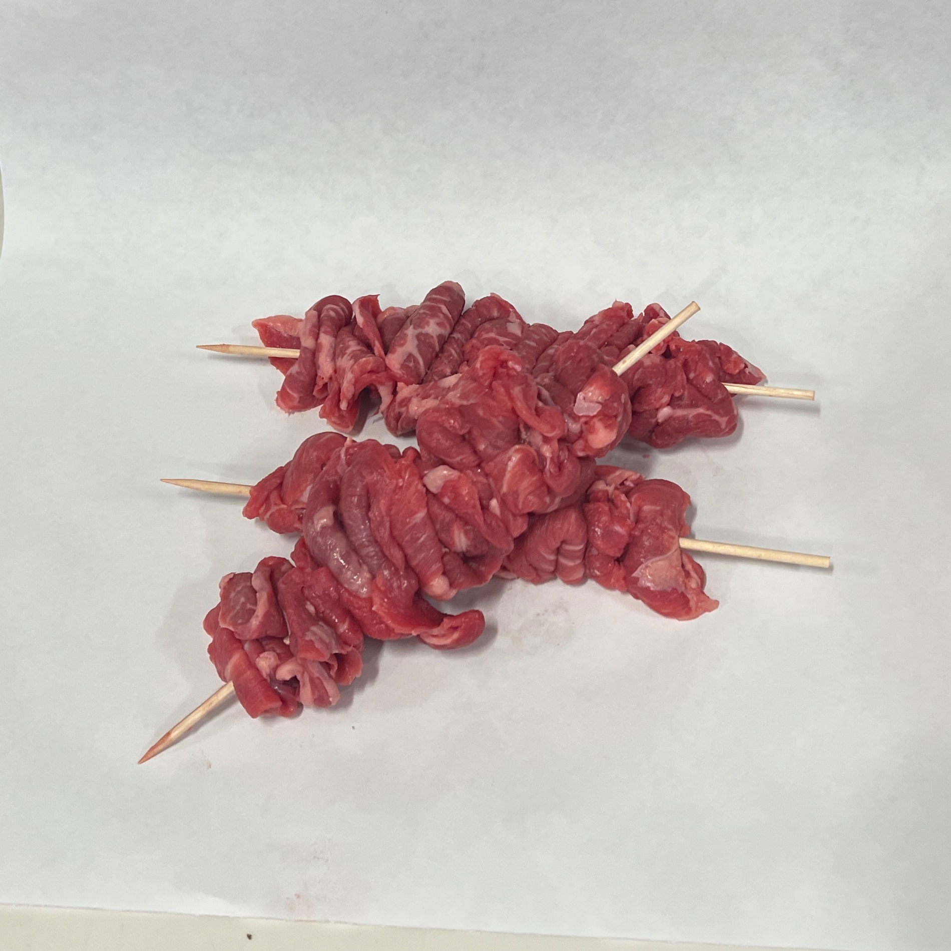 Each steak satay weighs 0.5 lbs. Order by the piece, not by weight.